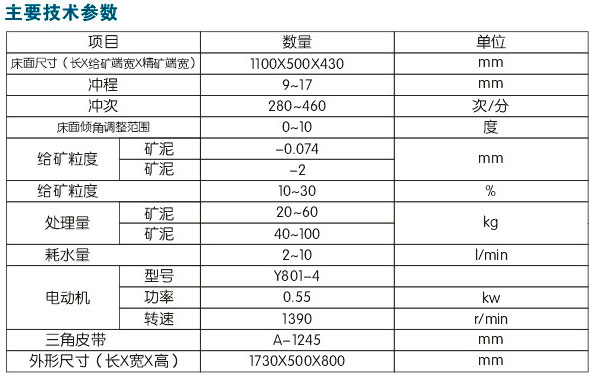 搖床是供實(shí)驗(yàn)室進(jìn)行礦石可選性研究、試驗(yàn)和小型選礦廠進(jìn)行重力選礦的常用設(shè)備,依據(jù)入選選礦物比重差和在往復(fù)不對(duì)稱運(yùn)動(dòng)并呈傾斜的床面橫向水流中的分層性能進(jìn)行選別。具有不同比重礦物在床面上分帶明顯,精礦質(zhì)量高、操作和調(diào)節(jié)方便等特點(diǎn)。